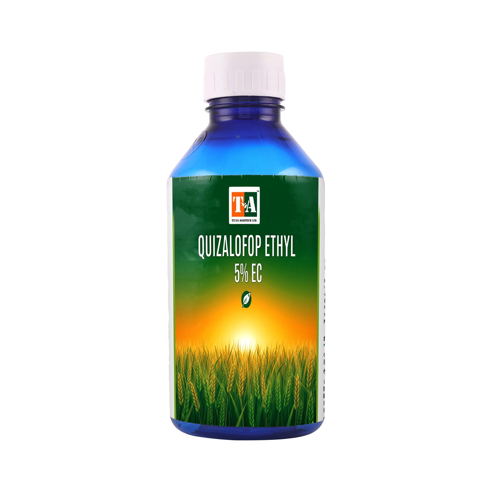 Product Description Quizalofop Ethyl 5% EC is a selective post emergence herbicide designed for controlling grassy weeds in broadleaf crops. It is absorbed by leaves and translocated to growing points of weeds which stop their growth and development. The formulation is effective on Echinochloa, Digitaria, Cynodon, Dactyloctenium and other common grassy weeds. It is used widely in crops like soybean, cotton, groundnut and pulses to maintain clean fields during critical crop stages. Quizalofop Ethyl 5% EC provides long lasting activity which helps in reducing weed competition and supports better crop growth. Mode of Action Quizalofop Ethyl inhibits acetyl CoA carboxylase enzyme in grasses which is essential for fatty acid synthesis. This inhibition stops cell division and growth at meristematic tissues of weeds leading to yellowing, necrosis and eventually death of target weeds. It mainly affects growing points and gives selective control without harming broadleaf crops. Benefits • Effective selective control of major grassy weeds in broadleaf crops • Absorbed and translocated systemically for complete kill of weeds • Maintain clean fields and reduce weed competition during early crop growth • Long lasting activity ensures extended protection from weeds • Low dose application with strong efficacy and crop safety