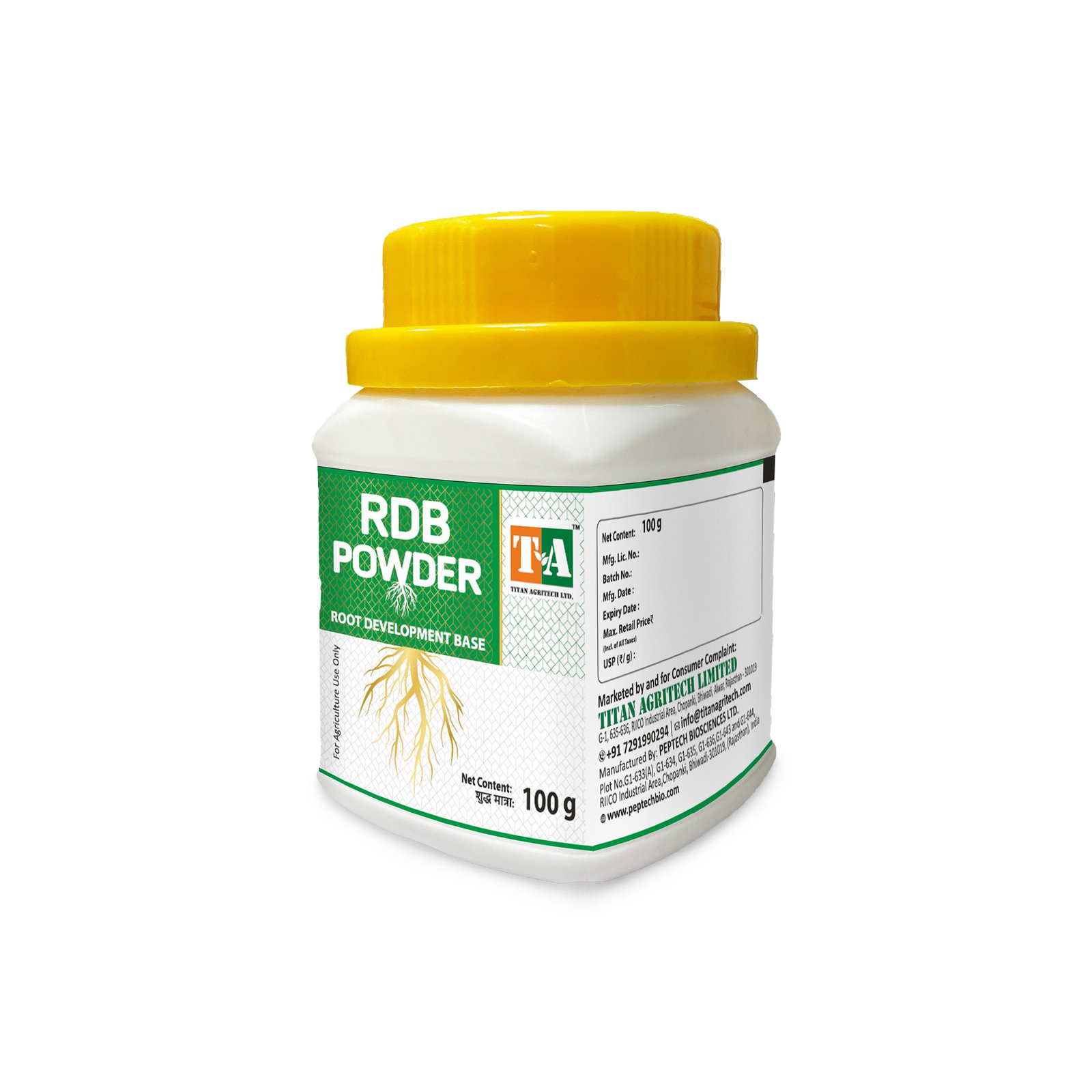 RDB Powder is an advanced water soluble bio stimulant made for fast and healthy root and shoot growth in all types of crops. It is a unique combination of humic acid, amino acid, vitamins and organic carbon which promote early root formation and better nutrient absorption in plants. The product is very effective for nursery, transplanted and direct seeded crops. It helps the young seedlings to establish strongly and develop more fibrous roots that improve water and nutrient holding capacity. It can be easily used through foliar spray, drip or soil drenching and is fully safe for plants and environment. Mode of Action RDB Powder works by stimulating cell division and elongation in root tissues. The humic acid and amino acids enhance metabolic activities inside plant cells that leads to stronger root initiation and shoot development. The vitamins act as natural growth regulators which increase enzymatic activity and promote photosynthesis. the product improves nutrient use efficiency by chelating essential elements and making them easily available to plants. As a result plants show vigorous early growth and better tolerance to stress like drought and heat. Benefits