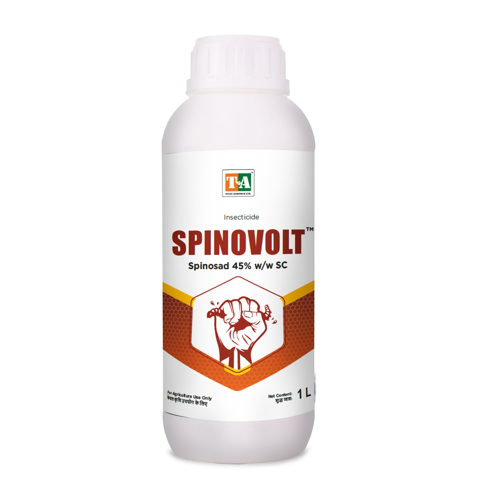 Spinosad 45% SC is a biological insecticide formulated as a suspension concentrate, containing 45% Spinosad as active ingredient. It is derived from naturally occurring soil bacteria and is widely used for managing chewing and boring pests in various crops. In crops like cotton, chilli and vegetables, borers and caterpillars can cause direct yield loss by damaging fruits, shoots and pods, so timely control is important. This formulation works through contact as well as ingestion. When pests come in contact with the spray or feed on treated plant parts, the active ingredient affects their nervous system. As a result, insects show continuous excitation, muscle contractions, tremors and finally paralysis, leading to death. Because of this strong action on feeding larvae, crop damage stops quickly after application.