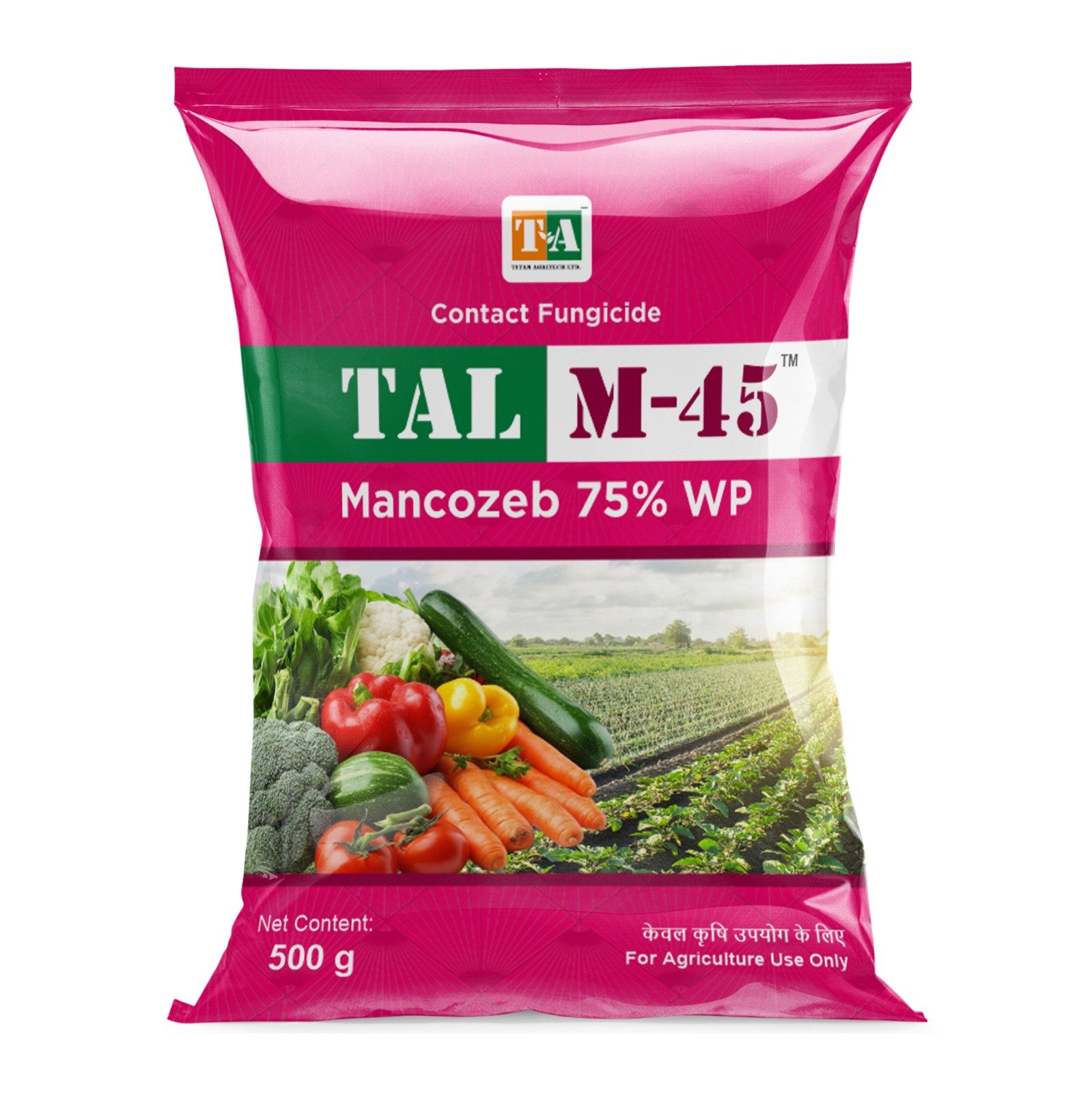 TAL M-45 a fungicide that effectively protects crops from a wide range of fungal diseases. It comes in wettable powder form, which spreads evenly on plant surfaces, ensuring complete disease control. It is suitable for vegetables, cereals, fruits, and other field crops.